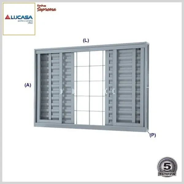Veneziana de Correr Central (Aço, Linha Suprema) Grade Quadrada - Medidas[AxLxP]: 100x150x14,0cm - Lucasa