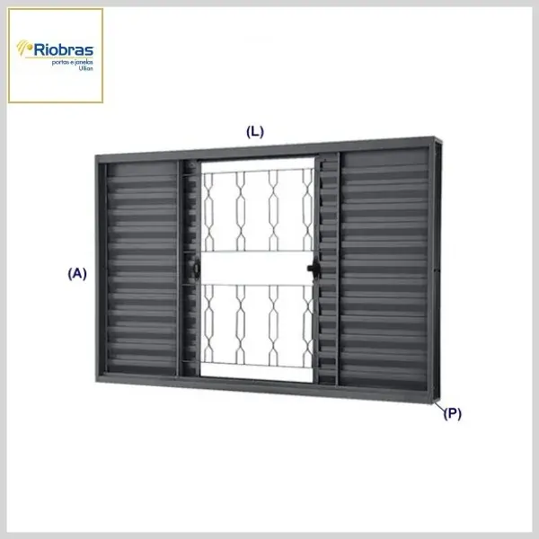 Veneziana de Correr Central (Aço) s/Fl.p/Vidro Grade Mosaico - Medidas: 100[A] x 102[L] x 13,0[P] cm - Riobras