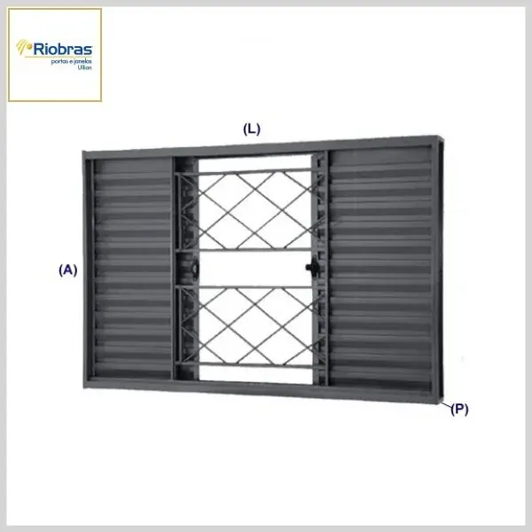 Veneziana de Correr Central (Aço) s/Fl.Vidro Grade Xadrez - Medidas: 100[A] x 102[L] x 13,0[P] cm - Riobras