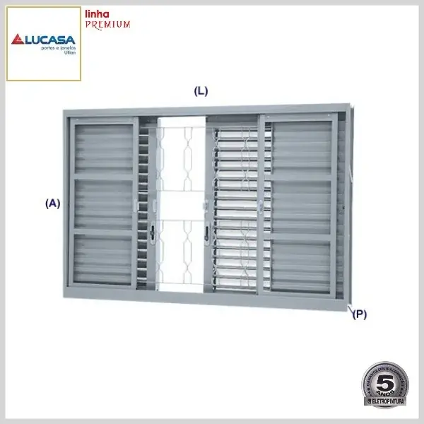 Veneziana de Correr Central Flex (Aço, Linha Premium) Grade Mosaico - Medidas: 100[A] x 150[L] x 16,0[P] cm - Lucasa