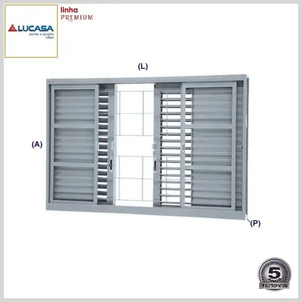 Veneziana de Correr Central Flex (Aço, Linha Premium) Grade Quadrada - Medidas: 100[A] x 150[L] x 16,0[P] cm - Lucasa