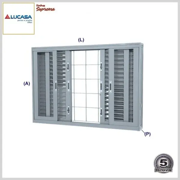 Veneziana de Correr Central Flex (Aço, Linha Suprema) Grade Quadrada - Medidas: 100[A] x 150[L] x 16,0[P] cm - Lucasa