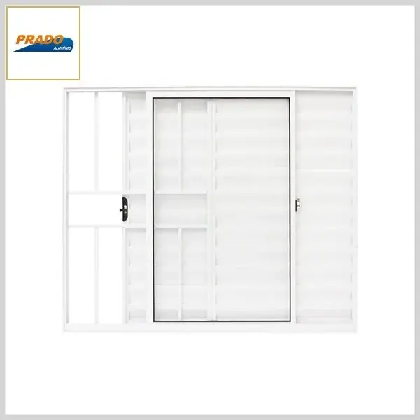 Veneziana de Correr Malta Alumínio Branco 3Folhas c/Vidro+Grade - 1.00 x 1.00 x 7.4cm (ab.lat) - Prado