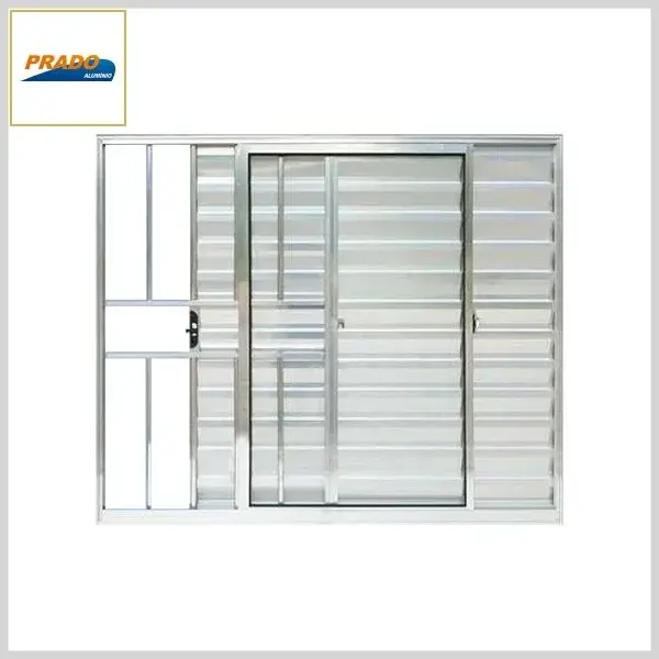 Veneziana de Correr Malta Alumínio Brilhante 3Folhas c/Vidro+Grade - 1.00 x 1.00 x 7.4cm (ab.lat) - Prado