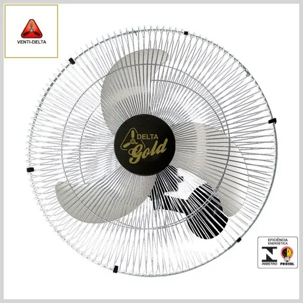 Ventilador de Parede Oscilante Gold 60cm/3Pás Grade Aço Preto/Cromado - Bivolt x 200 Watts - Venti-Delta