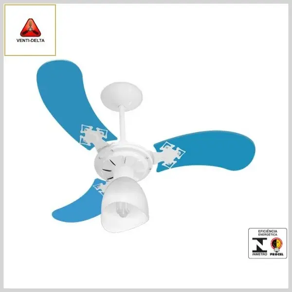 Ventilador de Teto Economiq New Baby Colors 3Pás Branco/Mdf Azul - 127 Volts x 130 Watts - Venti-Delta