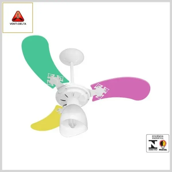 Ventilador de Teto Economiq New Baby Colors 3Pás Branco/Mdf Feminino - 127 Volts x 130 Watts - Venti-Delta