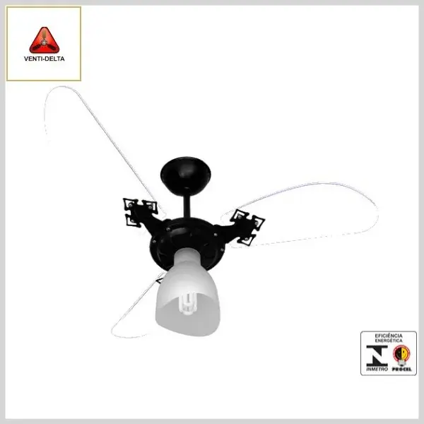 Ventilador de Teto Economiq New Cristal Light 3Pás Preto/Psai Transparente - 127 Volts x 130 Watts - Venti-Delta