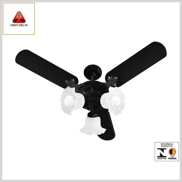 Ventilador de Teto Elegance New Beta 3Pás Mdf Preto - 127 Volts x 130 Watts - Venti-Delta
