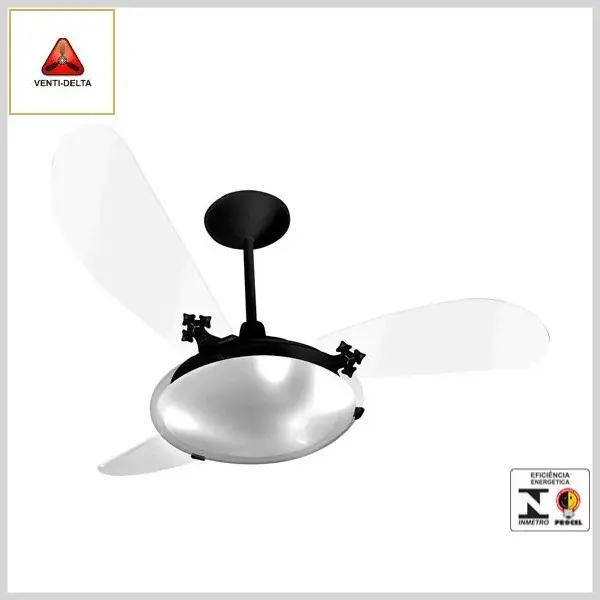 Ventilador de Teto Exuberance Delta Slim 3Pás Preto/Psai Transparente - 127 Volts x 130 Watts - Venti-Delta