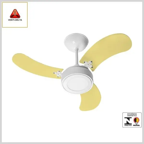 Ventilador de Teto Led New Colors 3Pás Branco/Mdf Amarelo - 127 Volts x 130 Watts - Venti-Delta