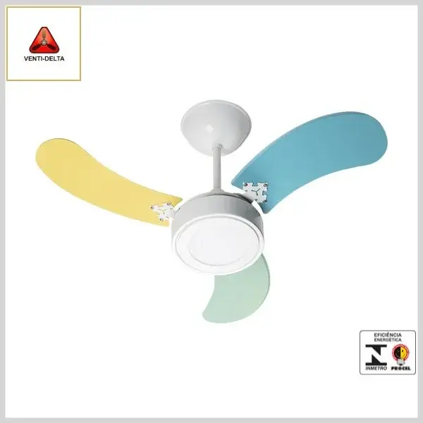 Ventilador de Teto Led New Colors 3Pás Branco/Mdf Masculino - 127 Volts x 130 Watts - Venti-Delta