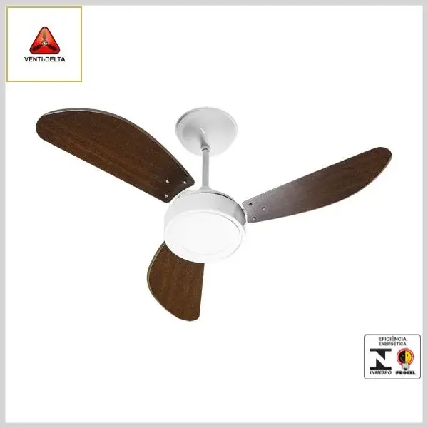 Ventilador de Teto Led New Light 3Pás Branco/Mdf Tabaco - 127 Volts x 130 Watts - Venti-Delta