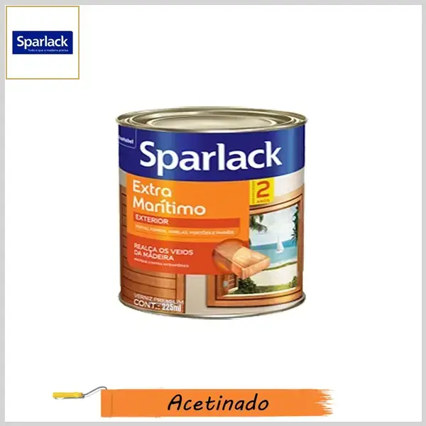 SPARLACK EXTRA MARÍTIMO é um verniz transparente de acabamento brilhante ou acetinado, possui filtro solar e boa resistência as intempéries e valoriza o aspecto natural da madeira, manténdo a beleza de seus veios e não altera a cor.