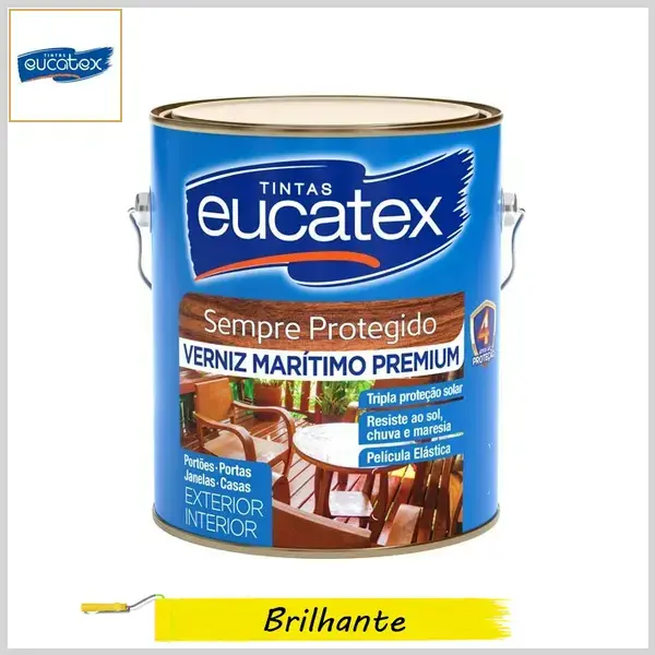 Eucatex Verniz Marítimo é um produto de fácil aplicação, bom alastramento e aderência, secagem rápida e que realça o aspecto natural da madeira, proporcionando acabamentos brilhante transparente ou acetinado.