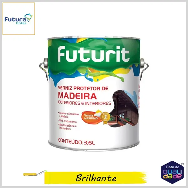 O Verniz Protetor de Madeira Marítimo Futurit é um produto com absorvedores de raios ultravioletas que agem como filtro solar, protegendo e embelezando a madeira por mais tempo. De fácil aplicação e com ótima resistência, pode ser aplicado em madeiras novas (previamente seladas) em áreas internas e externas ou em repinturas sobre qualquer tipo de verniz. Possui acabamento brilhante incolor.