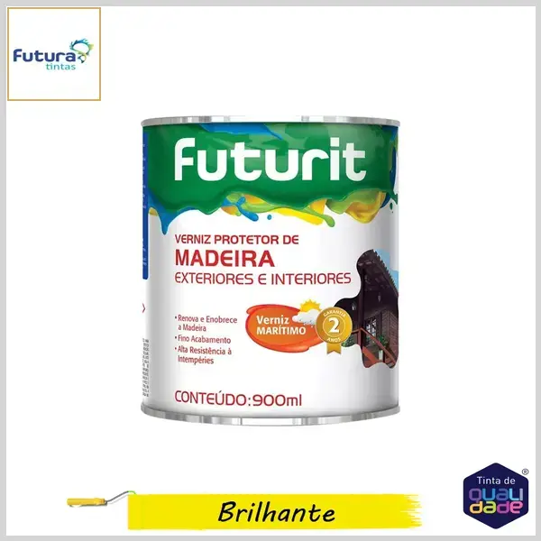 O Verniz Protetor de Madeira Marítimo Futurit é um produto com absorvedores de raios ultravioletas que agem como filtro solar, protegendo e embelezando a madeira por mais tempo. De fácil aplicação e com ótima resistência, pode ser aplicado em madeiras novas (previamente seladas) em áreas internas e externas ou em repinturas sobre qualquer tipo de verniz. Possui acabamento brilhante incolor.