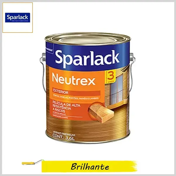 SPARLACK NEUTREX é um verniz tingidor colorido, com acabamento extremamente brilhante, formando uma película super rígida e resistente. Também pode ser utilizado como um impermeabilizante em paredes de alvenaria, reboco e concreto.