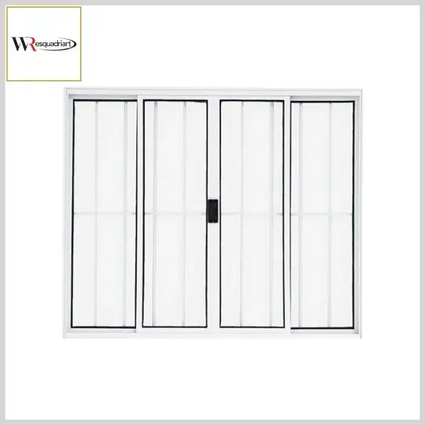 Vitrô de Correr 4Folhas Alumínio Branco c/Vidro+Grade - Ab.Central : Alt 1.00m x Larg 1.00m - WResquadriart