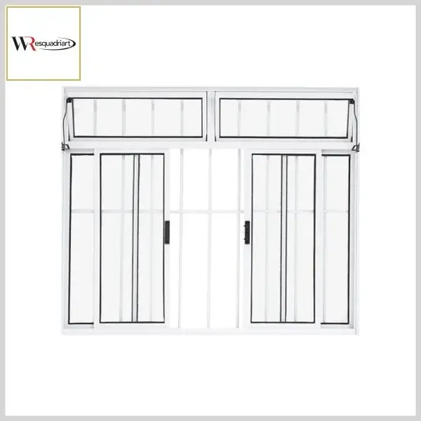 Vitrô de Correr 4Folhas Alumínio Branco c/Vidro+Grade+Bandeira - Ab.Central : Alt 1.00m x Larg 1.00m - WResquadriart