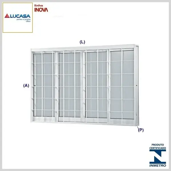 > Vitrô de Correr Central (Aço Galv, Linha Inova) Grade Quadrada
