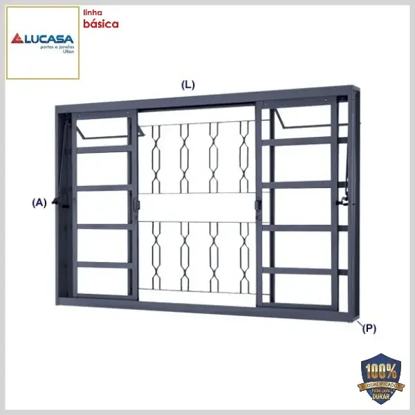 > Vitrô de Correr Central (Aço, Linha Básica) c/Báscula Grade Mosaico