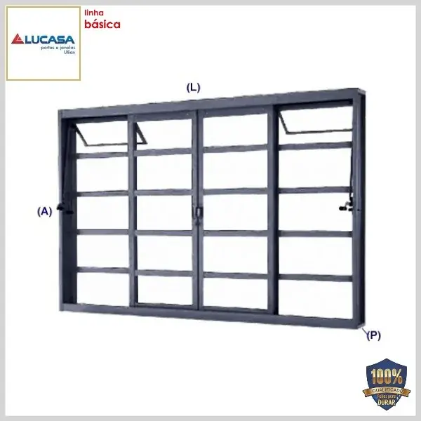 > Vitrô de Correr Central (Aço, Linha Básica) Travessa c/Báscula s/Grade