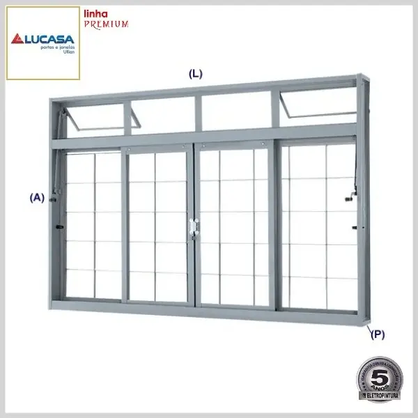 Vitrô de Correr Central (Aço, Linha Premium) c/Básc. Gr.Quadrada Total - Medidas: 100[A] x 150[L] x 13,0[P] cm - Lucasa