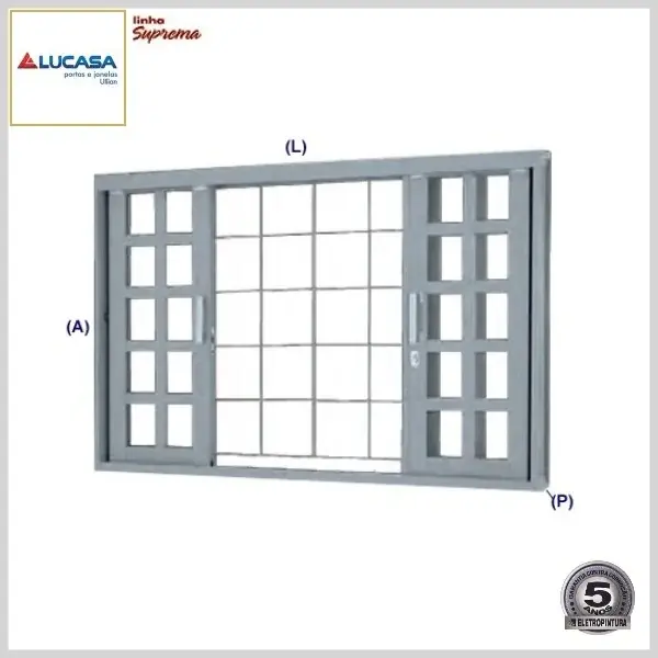 > Vitrô de Correr Central (Aço, Linha Suprema) Grade Quadrada
