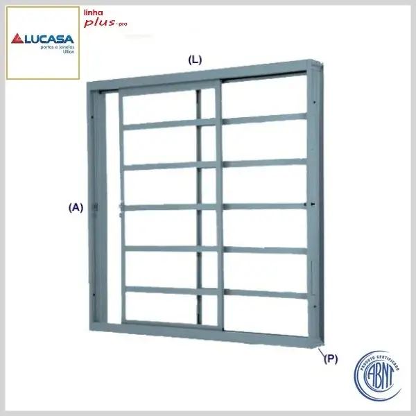 Vitrô de Correr Lateral (Aço, Linha Plus-Pro) 1 Fl.Móvel c/Travessa - Medidas: 100[A] x 100[L] x 8,0[P] cm - Lucasa