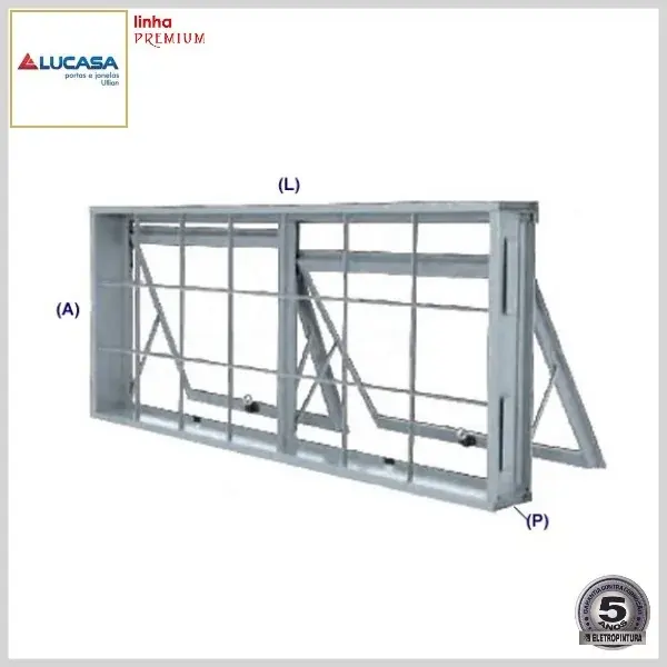 Vitrô Máximo-Ar Duplo Horizontal (Aço, Linha Premium) Grade Quadrada - Medidas: 60[A] x 140[L] x 7,0[P] cm - Lucasa