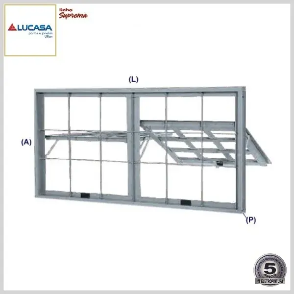 Vitrô Máximo-Ar Duplo Horizontal (Aço, Linha Suprema) Grade Quadrada - Medidas: 60[A] x 118[L] x 8,0[P] cm - Lucasa